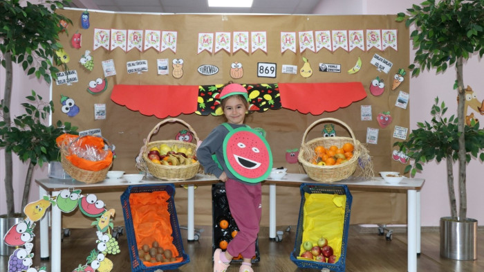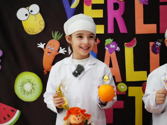 Yerli Malı Haftası dolayısıyla yerli malı ürünlerin kullanımına dikkat çekmek amacıyla meyve ve sebze kostümleri ile minikler elma, fındık, portakal ve çilek kılığında podyuma çıktılar.