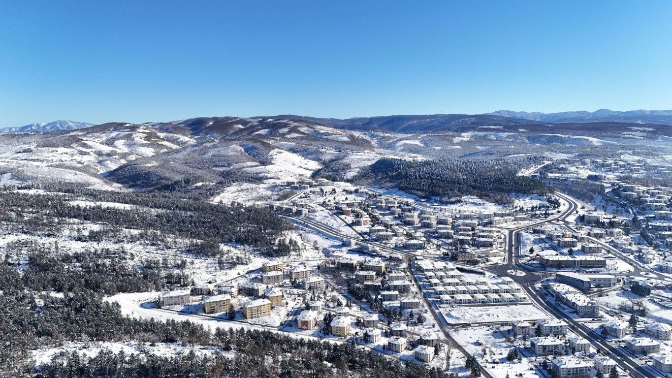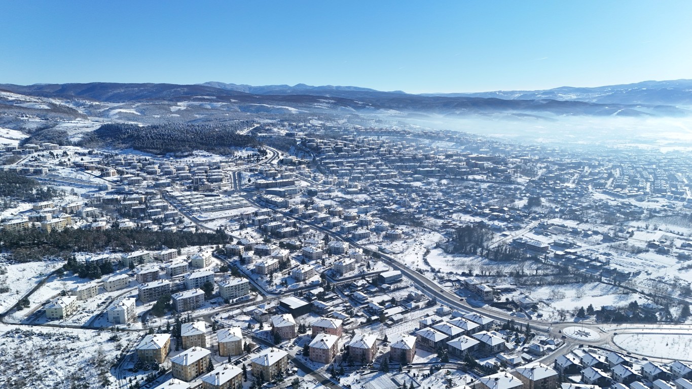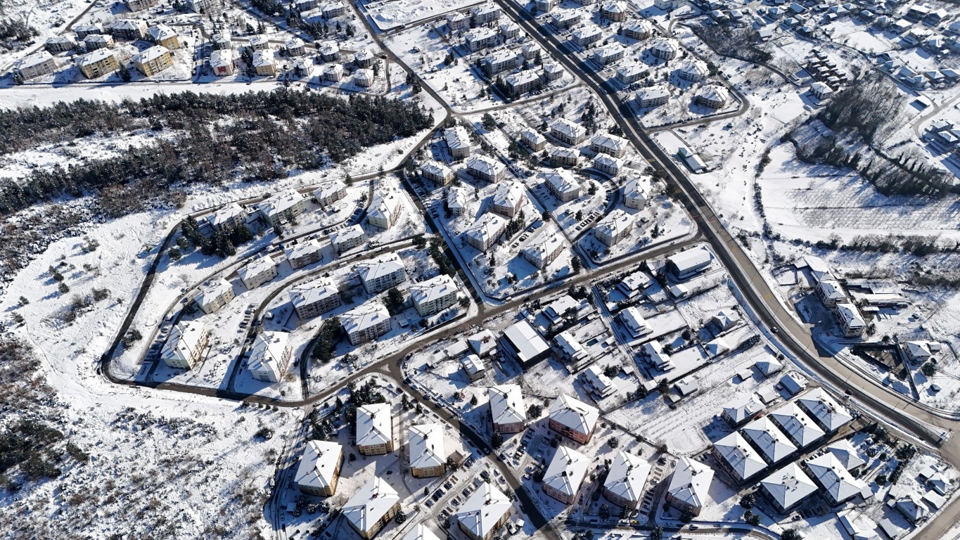 Düzce'nin "dronlu muhtarı" iş başında.Düzce beyaza büründü, ortaya kartpostallık görüntüler çıktı