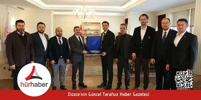 MÜSİAD Düzce Şubesi yapılan olağan kongre ile başkanlığa seçilen Özgür Sağlam ve Yönetim Kurulu, Vali Cevdet Atay’ı ziyaret ederek hedef ve projelerini anlattı.MÜSİAD Düzce Şubesi 15 Ocak’ta yapılan olağan kongre ile yönetim kurulu Başkanlığına Özgür Sağlam ve yeni yönetimi seçilmişti. Göreve geldikten sonra çalışmalarına hızlı başlayan Sağlam ve yönetimi yaptıkları toplantıların ardından Vali Cevdet Atay’ı makamında ziyaret etti. Ziyarette MÜSİAD'ın çalışmaları hakkında bilgiler veren Özgür Sağlam, ayrıca hedef ve projeleri hakkında da detaylı açıklama yaptı.Ziyaretten dolayı duyduğu mutluluğu dile getiren Vali Atay ise yeni seçilen Başkan Sağlam ve yönetim Kurulu üyelerine teşekkür etti.