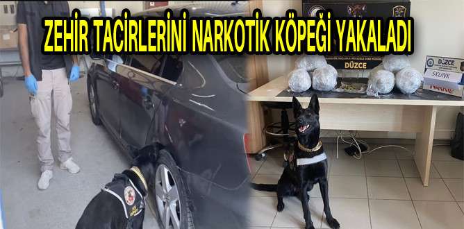 TEM Otoyolu Düzce geçişinde polis ekipleri şüpheli bir otomobili durdurdu. Narkotik köpeğinin otomobildeki siyah çantaya tepki vermesiyle yapılan aramada çantadan 6 buçuk kilo skunk ele geçirildi.