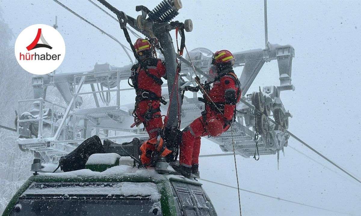 Yoğun kar yağışı altında gerçekleştirilen eğitimde itfaiye personelleri, iki direk arasında kalan kabin içerisindeki insanları kurtarmak için kabinleri taşıyan tellerden kabine ulaşım sağladı. Gerekli önlemleri alan itfaiye ekipleri, kabin içerisinde kalan vatandaşları başarılı bir şekilde tahliye etti.