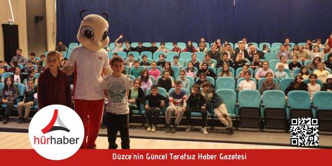 Öğrenciler projenin maskotu OLİ'ye ilgi gösterdi. Düzce Spor Haber Düzce Hür Haber