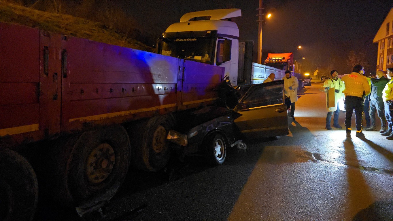 Karabük'te sürücüsünün alkollü olduğu otomobil, park halindeki tıra ok gibi saplandı.