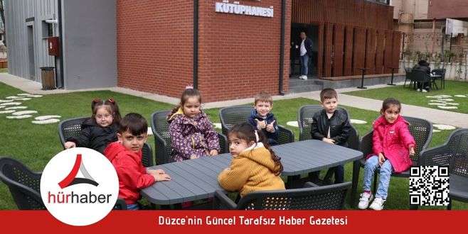 Düzce Belediyesi Çocuk Üniversitesi öğrencileri geçtiğimiz günlerde hizmete açılan Millet Kütüphanesi’ni ziyaret etti.Düzce Belediyesi Millet Kütüphanesi her yaştan misafirine ev sahipliği yapmaya devam ediyor. Geçtiğimiz günlerde hizmete giren kütüphanenin bugün çok özel misafirleri oldu. Düzce Belediyesi Çocuk Üniversitesi öğrencileri Millet Kütüphanesi’ne yaptıkları ziyarette ders çalışan büyüklerini rahatsız etmeden odaları ve çalışma ortamlarını gezdi. Çocukların kütüphaneye olan ilgileri yüzlerinden okunurken evlerinden getirdikleri birbirinden farklı kitapları Millet Kütüphanesi’ne bağışlamayı da ihmal etmediler.Gezinin sonunda kütüphanenin yeşillikler içindeki bahçesinde de vakit geçiren çocuklar, Düzce Belediye Başkanı Dr. Faruk Özlü’ye teşekkür etti.