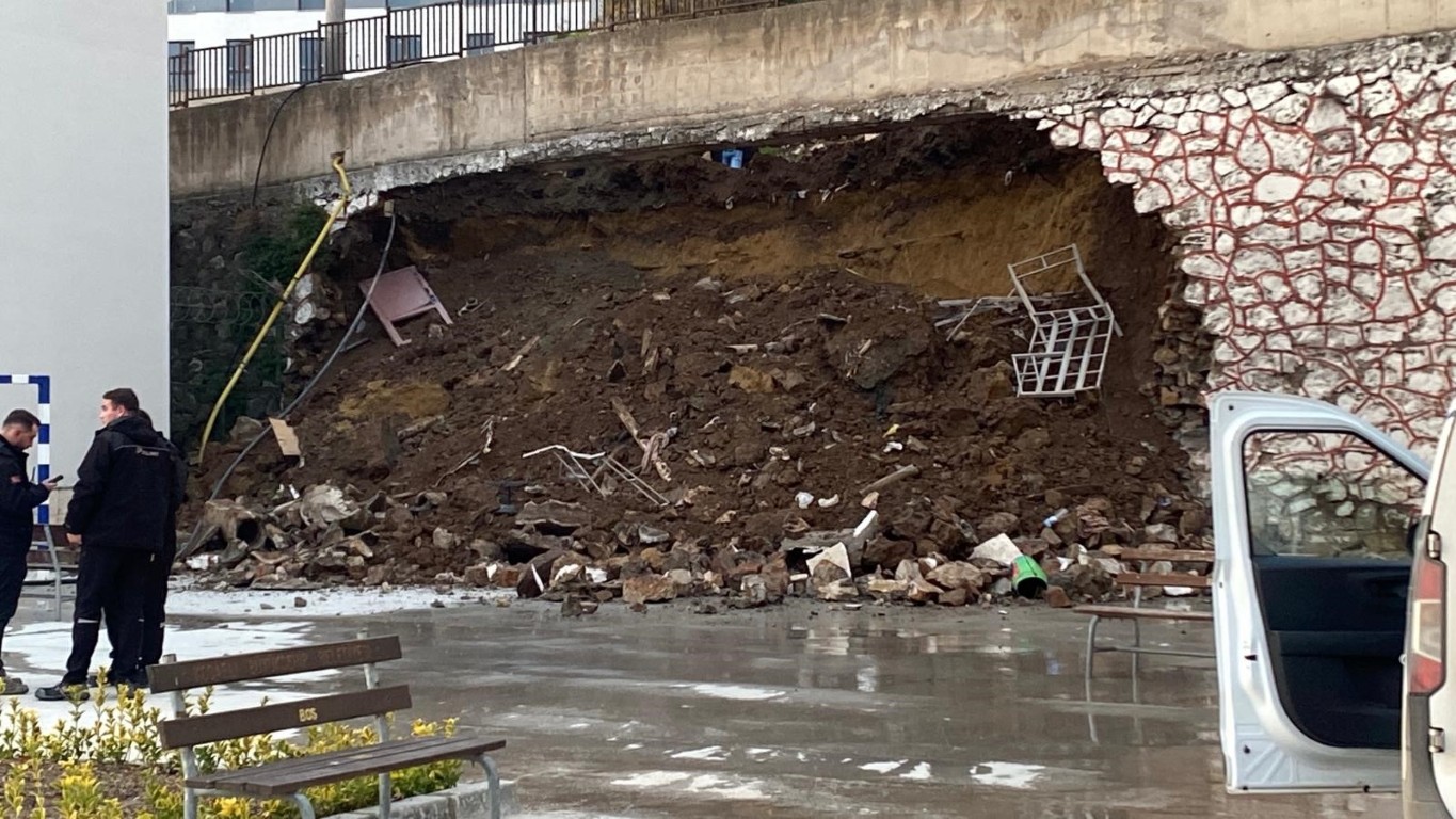 Edinilen bilgiye göre, iş makinesinin çalıştığı bölgede bulunan yaklaşık 10 metre yüksekliğindeki istinat duvarı, bir anda Mimar Sinan Anadolu Lisesi'nin bahçesine doğru göçtü.