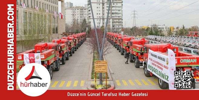 Bolu Orman Bölge Müdürlüğü'ne 42 yeni araç gönderildi.Tarım ve Orman Bakan Yardımcısı Veysel Tiryaki'nin katılımıyla düzenlenen törenle, 2023 yılının yeni araçlarını görücüye çıkaran Orman Genel Müdürlüğü, 117 arazöz, 170 ilk müdahale aracının yanı sıra, 68 kamyon, 10 ekskavatör, 10 greyder, 7 dozer olmak üzere toplam 382 yeni aracı filosuna dahil etti.Törende yaptığı konuşmada, yaşanan deprem ve sel felaketlerinde Tarım ve Orman Bakanlığı’na ait iş makinelerinin önemli görevler üstlendiğini söyleyen Veysel Tiryaki, 382 yeni aracın daha Orman Genel Müdürlüğü envanterine dahil edildiğini belirtti.Bolu'ya yapılan yatırımlara ilişkin de açıklamalarda bulunan Veysel Tiryaki, "Araçlarımızın tamamı bölge müdürlüklerimize dağıtıldı. Bolu’ya da toplamda 42 yeni araç gönderdik. 3 dozer, 7 greyder, 2 ekskavatör, 2 mini ekskavatör, 3 kamyon, 10 arazöz ve 14 yangın ilk müdahale aracını Bolu orman teşkilatımızın envanterine dahil ederek, Bolu’nun araç filosunu güçlendirdik. Bolu’ya ve tüm Türkiye’ye hayırlı uğurlu olmasını temenni ediyorum" dedi.