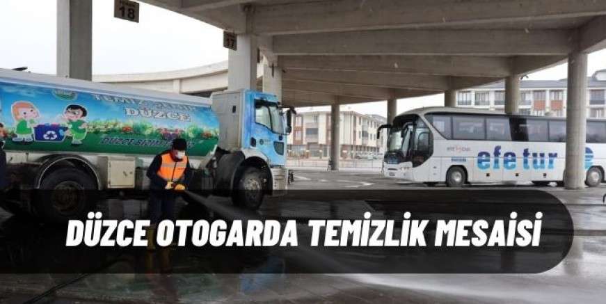 Hafta sonu uygulanan sokağa çıkma kısıtlamasında temizlik çalışmalarını yürüten Düzce Belediyesi ekipleri, şehirlerarası otobüs terminalinde detaylı temizlik ve dezenfekte çalışması yaptı.