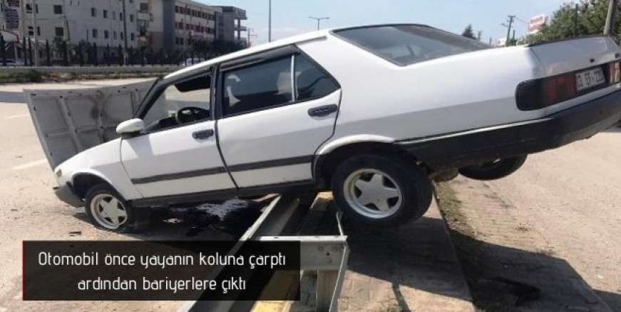 Otomobil önce yayanın koluna çarptı ardından bariyerlere çıktı