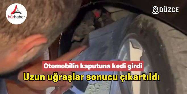 Düzce'nin Çilimli ilçesinde bir otomobilin kaputundan motor kısmına giren kedi uzun uğraşlar sonucu çıkartıldı.