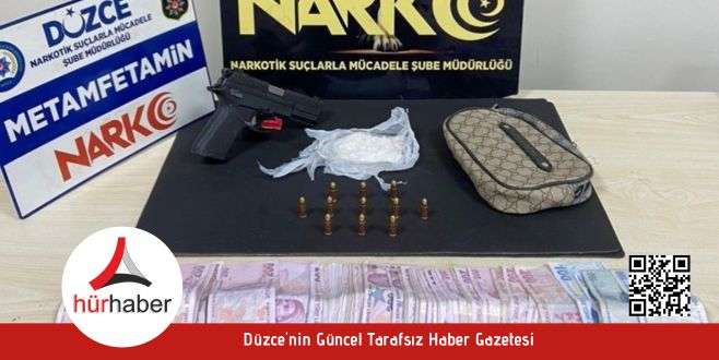 Düzce narkotik ekipleri tarafından İstanbul-Ankara otoyolunda durdurulan otomobilde 101 gram metamfetamin ve silah ele geçirildi.Düzce Narkotik Suçlarla Mücadele Şube Müdürlüğünce yürütülen çalışmalarda, Ankara-İstanbul otoyolunda şüphelenilerek durdurulan İstanbul plakalı araçta ve araçta bulunan M.Ü. ve E.K. isimli şahısların üzerinde yapılan aramada 101 gram metamfetamin, 1 adet silah ve silaha ait 11 fişek, suçtan elde edildiği değerlendirilen 23 bin lira ele geçirildi. Şüpheliler uyuşturucu madde ticareti yapmak suçundan gözaltına alındı.