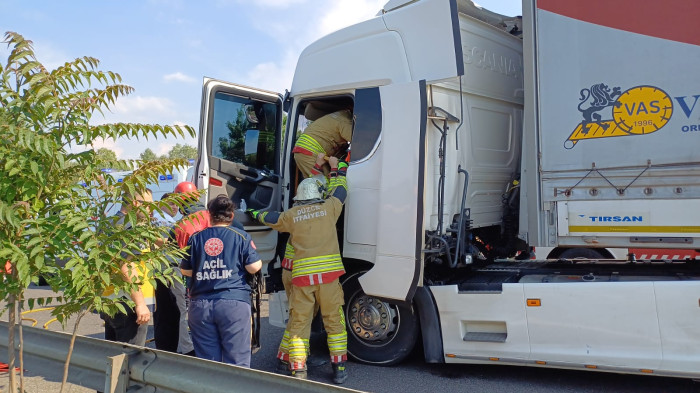İtfaiye sıkışan tırda yolcuyu yoğun çalışma ile kurtardı