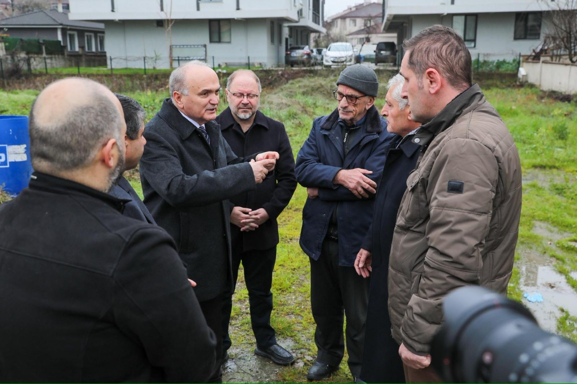 Başkan Özlü, Belediye Başkan Yardımcıları Hasan Günden ve Barış Bayrak ile birlikte ilk olarak Hamidiye Mahallesi’nde belediyeye ait alanda inceleme yaptı.