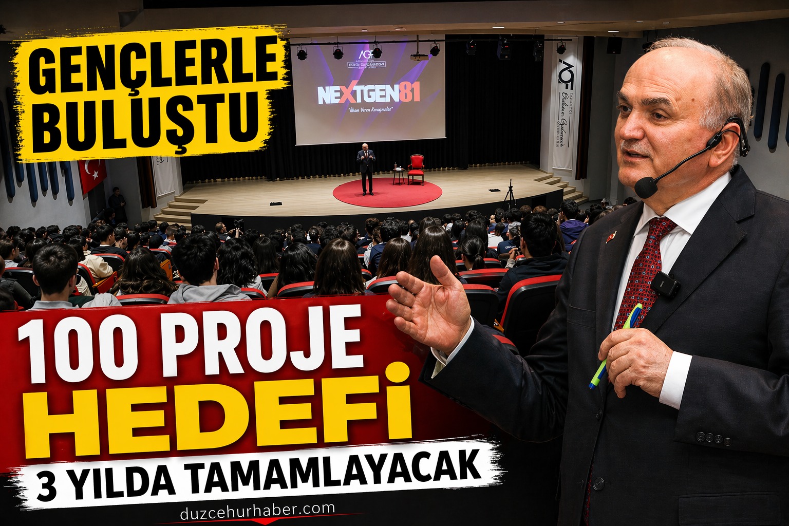 Düzce Belediye Başkanı Dr. Faruk Özlü, lise öğrencileriyle bir araya geldiği programda hem hayat tecrübelerini paylaştı hem de yeni hedefini açıkladı.Akçakoca Orhan Özdemir Fen Lisesi tarafından ilki düzenlenen “ Nextgen81 İlham Veren Konuşmalar” programının ilk konuğu Düzce Belediye Başkanı Faruk Özlü oldu.