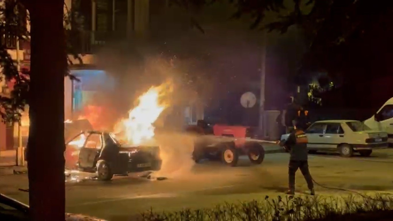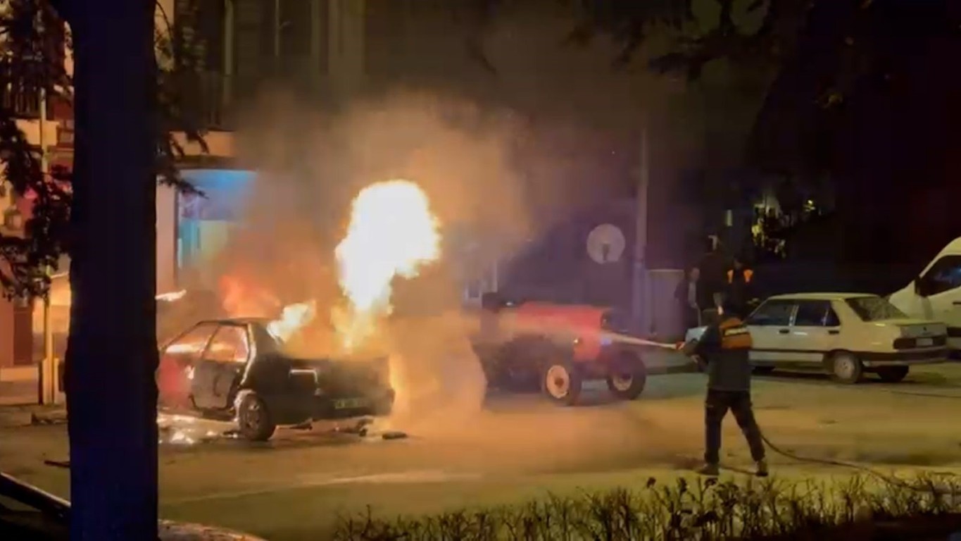 Kısa sürede alevlere teslim olan araç, rüzgarın da etkisiyle tamamen yanmaya başladı. Çevredeki vatandaşların ihbarı üzerine olay yerine itfaiye ekipleri sevk edildi.