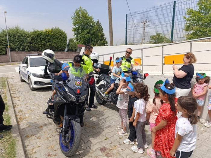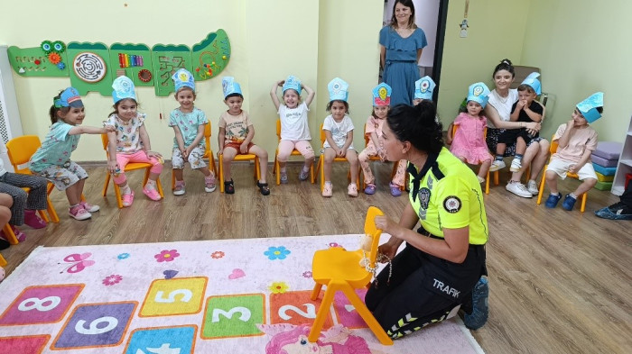 Polis memurları, minik öğrencilere yaya geçidi, trafik ışıklarının önemi, emniyet kemerinin önemi, hız limitleri ve özellikle araçlarda bulunması gereken bebek koltuğu gibi konularda bilgiler vererek, ailelerinin trafik kurallarına uymaları konusunda, miniklerin de yardımcı olmasını istediler.