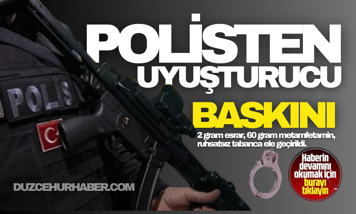 Düzce’de polis ekipleri tarafından yapılan uyuşturucu operasyonunda 2 gram esrar, 60 gram metamfetamin, ruhsatsız tabanca ele geçirildi.