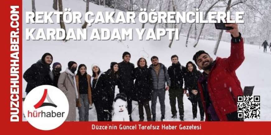 Düzce Üniversitesi Rektörü Prof. Dr. Nigar Demircan Çakar, öğrencilerle birlikte kampüste kardan adam yaptı.Yurtta etkili olan kar yağışı nedeniyle bir çok ilde eğitim öğretime ara verildi. Düzce Üniversitesi Rektörü Prof. Dr. Nigar Demircan Çakar’da dün akşam (18 Ocak) sosyal medya hesabından “Gençler yarın bize tatil yok. Sınavlar aynen devam. Sabah ulaşım sorunu sebebiyle sınavlara geç kalan olursa ve sorun yaşarsa bölüm başkanlığına dilekçe ile başvursun. Kardan adam yapmak için buluşabiliriz isterseniz” paylaşımını yaptı. Söz verdi yaptı Rektör Nigar Demircan Çakar’ın paylaşımının ardından birçok öğrenci kardan adam yapma teklifini beğendi. Rektör Çakar, sözünü tutarak öğle arasında Kampüs Orta Kafe öğrencilerle buluşarak kardan adan yaptı, keyifli vakit geçirdi. Öğrenciler bu günü öz çekim yaparak ölümsüzleştirdi.