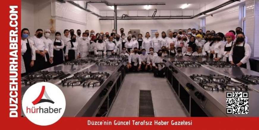 Toplantı sonrasında, Gastronomi ve Mutfak Sanatları bölümüne ait son derece modern ekipmanlarla donatılan, Düzce Üniversitesi’nin önemli yatırımları arasında bulunan ve yiyecek içecek sektörüne girişimci, nitelikli ve donanımlı insan gücü yetiştirilmesine büyük katkı sağlayacak olan Gastronomi Mutfağında ilk uygulama, Rektör Prof. Dr. Nigar Demircan Çakar ve öğrenciler tarafından gerçekleştirildi.
