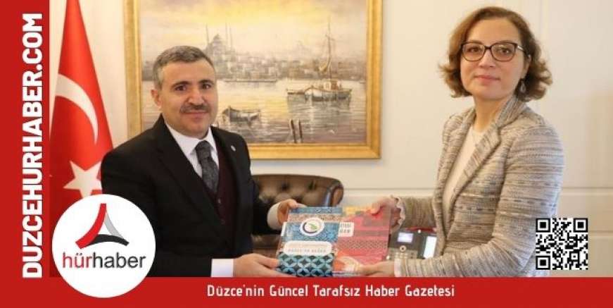 Düzce Üniversitesi Rektörü Prof. Dr. Nigar Demircan Çakar, Vali Cevdet Atay’ı ziyaret ederek "Düzce’ye Değer” kitabını takdim etti.Vali Atay, Rektör Çakar’ı makamında ağırladı. Rektör Nigar Demircan Çakar, Atay’a Düzce Üniversitesi’nin kent için yürüttüğü tüm akademik çalışmalar, bölgenin sorunlarına yönelik gerçekleştirdikleri araştırmalar ve çözüm önerilerini derleyerek oluşturdukları "Düzce'ye Değer" kitabını takdim etti.Cevdet Atay, ziyaretten duyduğu memnuniyeti dile getirerek kitabı büyük bir dikkatle inceleyeceğini söyledi.