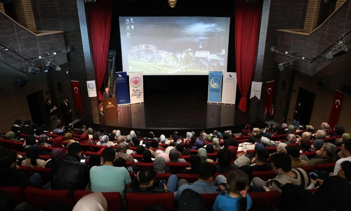Düzce Üniversitesi Ahlak ve Maneviyatı Güçlendirme Topluluğu tarafından düzenlenen "Gazze Üzerine Düşünceler" başlıklı konferans, İstiklâl Konferans Salonu'nda yoğun bir katılımla gerçekleştirildi.