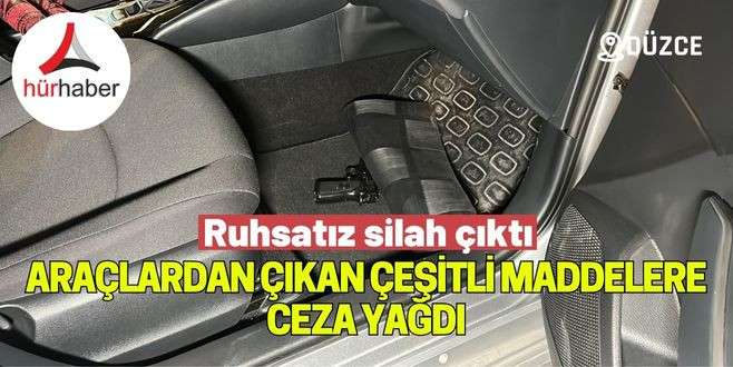 Düzce’de polis ekiplerince yapılan huzur uygulamasında ekipler araçları ve şahısları didik dik aradı. Bir aracın paspasının altından ise ruhsatsız tabanca çıktı.