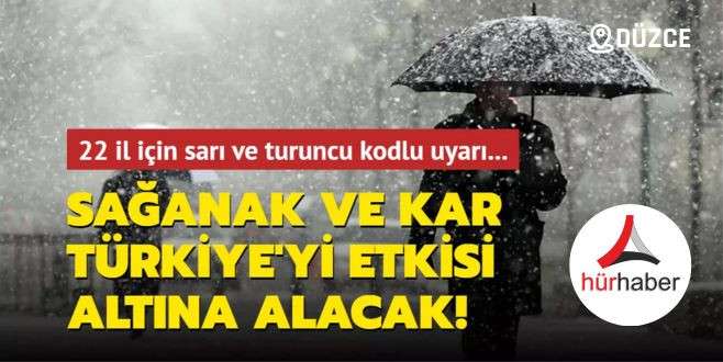 Sağanak ve ve kar yağışı bugünden itibaren Türkiye'yi etkisi altına alıyor. Sıcaklıklar hissedilir şekilde düşecek. Yeni yayımlanan haritada 22 il için sarı ve turuncu kodlu uyarı yapıldı. İşte İstanbul, Ankara, Trabzon dahil il il hava durumu...