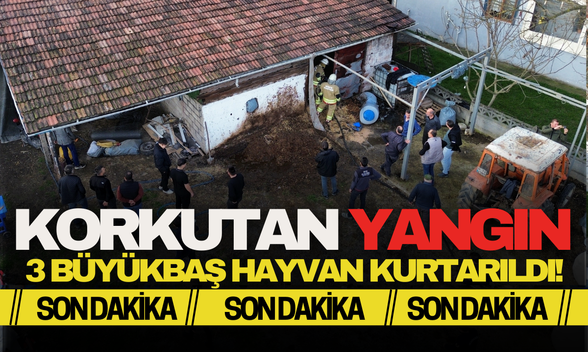 Düzce'de samanlıkta çıkan yangına zamanında müdahale eden itfaiye ekipleri 3 büyükbaş hayvanı kurtardı.