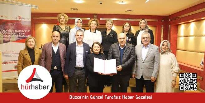 Düzce Ticaret ve Sanayi Odası (DTSO) koordinatörlüğünde faaliyetlerini sürdüren TOBB Düzce Kadın Girişimciler Kurulu, sanayide kadın istihdamının ve sanayi sektöründe gençlere ilham olacak rol model kadın sayısının artırılması ve sanayide nitelikli istihdam ihtiyacının karşılanmasına katkı sağlamak amacıyla hayata geçirilen ‘Sanayide Kadın Eli’ Projesi’nin 8.’si imzalandı.Eğitim almış ancak istihdama katılamamış ve çalışmaya istekli kadınları Meslek Lisesi mezunu ve eğitimi devam eden gençleri hedefleyen projenin imza töreni DTSO’nun ev sahipliğinde gerçekleştirildi. İmza törenine DTSO Meclis Başkanı Tanju Acar, Başkan Yardımcısı Cemal Aksan, TOBB Düzce Kadın Girişimciler Kurulu Başkanı Serap Küçük, Şerifoğlu Ağaç Sanayi Yönetim Kurulu Üyesi Mehmet Şerifoğlu ve Muhasebe Müdürü Şahin Arıcak katılım sağladı.İmzalarının atılmasından sonra konuşan DTSO Başkan Yardımcısı Cemal Aksan; “TOBB Düzce Kadın Girişimciler Kurulu’nun girişimleriyle hayata geçirilen Sanayide Kadın Eli Projesi hem şehrimiz hem ülkemiz adına güzel bir proje olduğunu düşünüyoruz. Kadınlarımızın ülkemizin her yerinde aktif olmasının dışında sanayideki eksikliğinin de bu tarz projeler ile giderileceğini inanıyoruz. Şerifoğlu ailesinin de firmasının da böyle bir markanın bu projeye destek olmasının kadın gücünün Türkiye açısından öneminin belirtilmesi noktasında yardımcı olmasından dolayı teşekkür ediyorum. Projenin başarıya ulaşması için sonuna kadar arkasında duracağız” dedi.Şerifoğlu Ağaç Sanayi Yönetim Kurulu Üyesi Mehmet Şerifoğlu ise, Düzce Kadın Girişimciler Kurulu’nun bu girişimciliğini tebrik ederek “İnşallah bu çalışmalar ile kadın istihdamı daha da çok artar. Protokol hepimiz için hayırlı olsun” ifadelerini kullandı.Protokol imza töreni toplu fotoğraf çekimi ile sona erdi.