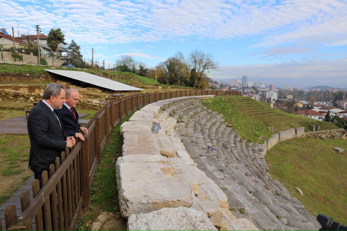 Başkan Faruk Özlü’nün davetlisi olarak şehirde bir dizi programa katılan ve daha sonra Konuralp Antik Tiyatro alanını ziyaret eden Osman Okyay, tarihi yapı hakkında bilgi aldı. İstanbul ve Ankara’ya en yakın antik tiyatro olma özelliği taşıyan Konuralp Antik Tiyatro hakkında bilgiler paylaşan Başkan Özlü, Konuralp’i bir destinasyon merkezi haline getirmek için üç aşamalı çalışma planı hazırladıklarını aktardı.