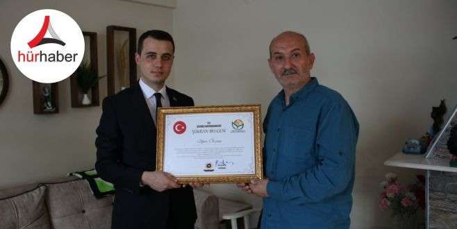 Çilimli Kaymakamı Furkan Alpay, Mardin’de 1993 yılında şahit olan Jandarma Çavuş Tadat Özcan’ın kardeşi Uğur Özcan’a şükran belgesi verdi.