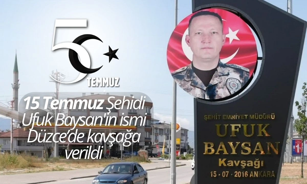 Düzce Belediye Meclisi kararı ile Nezih Tücüncüoğlu Bulvarı üzerinde Aziziye Mahallesi girişi ile D-100 karayolunun kesiştiği kavşağa 15 Temmuz darbe girişimi sırasında Ankara Gölbaşı’nda bombalanan Özel Harekat Daire Başkanlığı’nda şehit düşen Emniyet Müdürü Ufuk Baysan’ın ismi verildi.