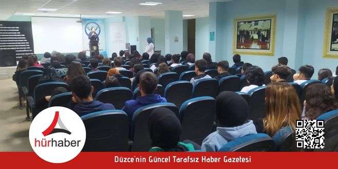 Düzce 15 Temmuz Şehitler Anadolu Lisesi'nde, Dünya Şeker Tüketimine Dikkat Haftası programı yapıldı. Programda aşırı şeker tüketiminin insanların sağlıklarını olumsuz etkileri anlatıldı.15 Temmuz Şehitler Anadolu Lisesi'nde, 19-25 Eylül Dünya Şeker Tüketimine Dikkat Haftası programı gerçekleştirildi. Düzce Üniversitesi Tıp Fakültesi, Çocuk Endokrinolojisi Bilim Dalı Başkanı Prof. Dr. İlknur Arslanoğlu'nun konuşmacı olarak katıldığı programa okul idarecileri, öğretmenler ve öğrenciler katıldı.Aşırı şeker tüketiminin insanların sağlıklarını olumsuz etkilediği, obeziteden hipertansiyona, kalp damar hastalıklarından, kronik böbrek yetmezliğine ve depresyona kadar birçok hastalığı tetiklemesi anlatıldı. Öğrenciler programı büyük bir dikkat ve beğeniyle dinledi.