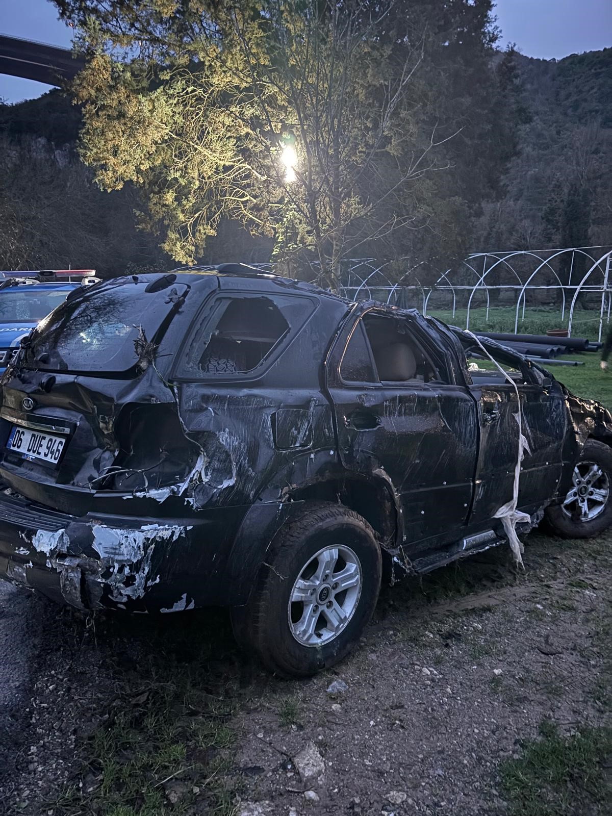 Dereye sürüklenen araç ertesi gün ortaya çıktı.Kendi imkanlarıyla aradı, gördüğü manzara şoke etti