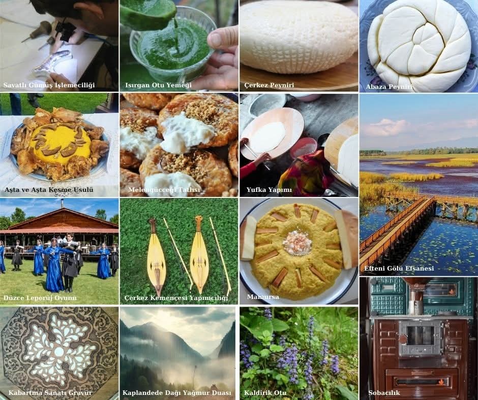Düzce'de, somut olmayan kültürel miras unsurlarına yönelik yürütülen envanter çalışmaları kapsamında, 2026 yılı itibarıyla şıra yapımı, sepetçilik ve bıçakçılık unsurlarının listeye eklenmesiyle birlikte toplam unsur sayısı 18'e yükseldi. 2026 yılı itibarıyla Düzce'nin somut olmayan kültürel miras unsurları; Kaplan Dede Dağı Yağmur Duası, Kabartma Sanatı (Gravür), Savatlı Gümüş İşlemeciliği, Çerkez Kemençesi Yapımcılığı, Aşta ve Aşta Kesme Usulü, Efteni Gölü Efsanesi, Düzce Leperüş Oyunu, Kaldirik Otu, Melengücceği Tatlısı, Sobacılık, Çerkez Peyniri, Abaza Peyniri, Isırgan Otu Yemeği, Yufka Yapımı, Mamursa, Şıra Yapımı, Sepetçilik ve Bıçakçılık olarak sıralandı. Somut Olmayan Kültürel Miras Envanter Çalışmaları, Kültür ve Turizm Bakanlığı Yaşayan Miras ve Kültürel Etkinlikler Genel Müdürlüğü tarafından, İl Kültür ve Turizm Müdürlükleri koordinasyonunda illerde oluşturulan il tespit komisyonları aracılığıyla yürütülüyor.