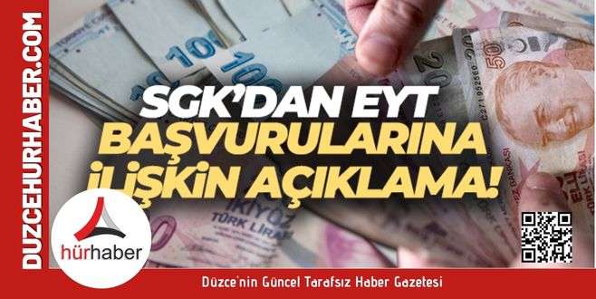 Sigortalı olanların emekli aylığına hak kazanmasında yaş şartını kaldıran düzenlemenin TBMM Genel Kurulunda kabul edilmesinin ardından, çok sayıda vatandaşın e-Devlet üzerinden ve doğrudan SGK'ya başvuru yolu ile aylık talebinde bulunması üzerine SGK'dan konu ile ilgili açıklama yapıldı. TBMM'de kabul edilen EYT kanun teklifinin Resmi Gazete'de yayımlanmasıyla birlikte başvuru sürecinin başlayacağının belirtildiği açıklamada şu ifadelere yer verildi: