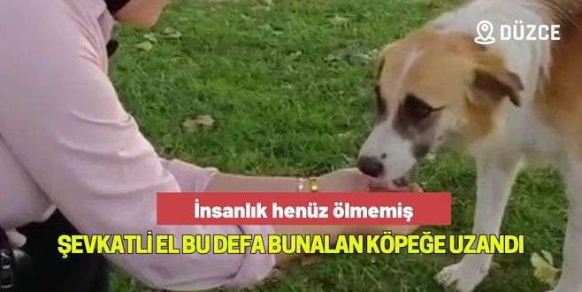 Düzce'de sıcak havanın etkisiyle baygın düşen sokak köpeğine elleriyle su içiren kadın, bu davranışıyla kalpleri ısıttı.