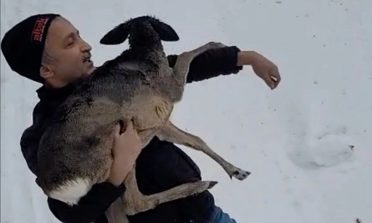 Düzce’nin Güzeldere köyü mevkiinde karların içinde yaralı halde bulunan yavru karaca, duyarlı bir vatandaş tarafından kurtarıldı.