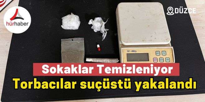 Düzce İl Emniyet Müdürlüğü Asayiş Şube Müdürlüğü ekiplerince uyuşturucu madde ticareti yaptığı belirlenen 8 adet sabıkası bulunan H.K. ve 2 tane sabıkası bulunan A.Ç. İSİMLİ şahıslar sokak üzerinde durduruldu. Başsavcılığın talimatıyla durdurulan şahıslardan yapılan kaba üst aramasında 3 parça halinde 37 gram metamfetamin, 1 tane uyuşturucu hap ile 2.2 gram esrar maddesi ele geçirildi. Şahısların yapılan ev aramasında ise 1 adet hassas terazi, 5 gram bonzai ele geçirildi.