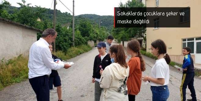 Sokaklarda çocuklara şeker ve maske dağıtıldı