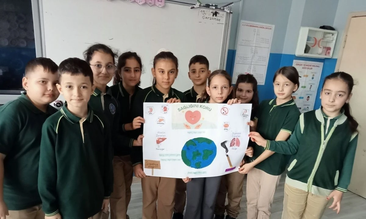 Karaçalı Süperlit İlkokulu 4/B sınıfı öğrencileri, sağlıklı yaşam bilincini geliştirmek ve zararlı alışkanlıklara dikkat çekmek amacıyla "Sigara ve Alkolün Zararları" konulu slogan ve afiş tasarımı etkinliği gerçekleştirdi. Öğretmenleri rehberliğinde düzenlenen grup çalışmasında öğrenciler, sigara ve alkolün hem bireysel hem de toplumsal etkilerini araştırarak kendi fikirlerini afişe yansıttı.Etkinlik sırasında öğrenciler, grupla birlikte çalışarak kısa ve etkili sloganlar oluşturdu. Renkli çizimler, uyarıcı görseller ve mesaj verici sembollerle güçlendirilen afişler büyük ilgi gördü.Etkinliğin amacının öğrencilerde erken yaşta farkındalık oluşturmak olduğu belirtilerek "Çocuklarımızın sağlıklı yaşam konusunda bilinçlenmesi ve zararlı alışkanlıklardan uzak durmayı bir yaşam tercihi olarak benimsemeleri bizim için çok önemli. Grup çalışması sayesinde hem iş birliği becerilerini geliştirdiler hem de toplumsal bir konuda sorumluluk aldılar" denildi.