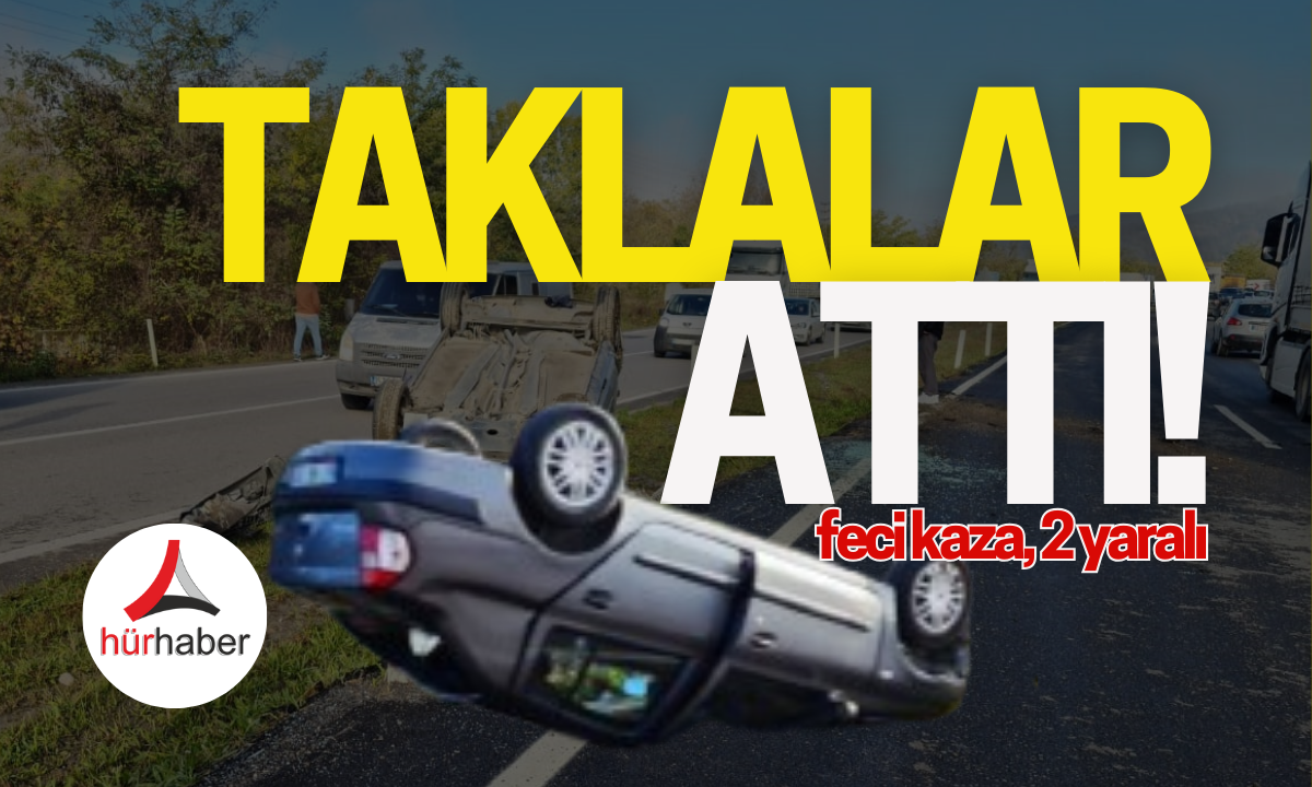 Taklalar attı! Kara yolunda feci kaza, 2 yaralı!