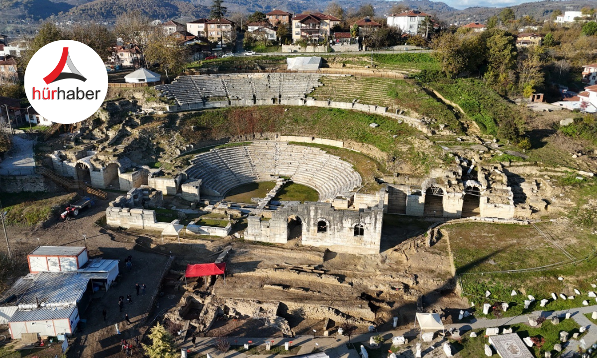 Düzce'nin Konuralp bölgesindeki antik tiyatro alanında Düzce Belediyesi'nin desteğiyle yapılan kazı çalışmalarında dikkat çeken yeni bir bulgu daha ortaya çıktı.