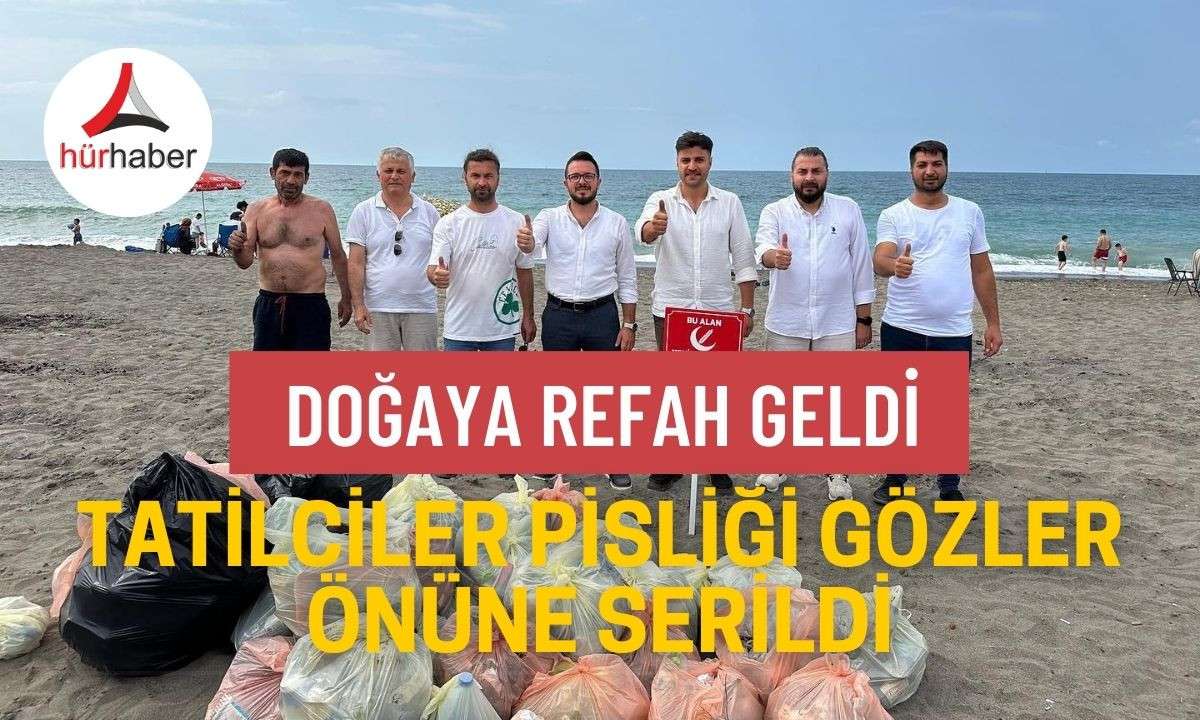 Yeniden Refah Partisi Gençlik Kolları ve Akçakoca İlçe Başkanlığı, turizm sezonunda, tatilcilerin sahile bıraktıkları çöpleri, “Doğaya refah gelsin” projesi ile temizlediler.