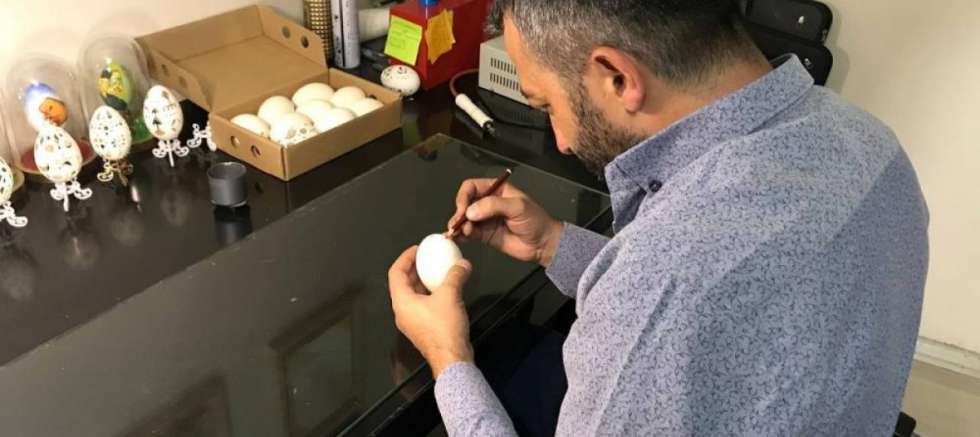 Bayburt'ta yaşayan resim öğretmeni Zeynel Abidin Öztürk, kendine ait atölyesinde yumurtaları oyup, şekiller vererek yumurta üzerlerine resimler çiziyor.