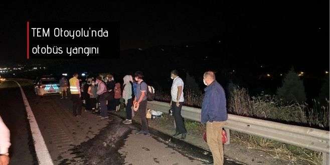 Düzce TEM Otoyolu Gümüşova rampalarında yolcu otobüsü motor kısmından alev alarak yanmaya başladı. Dumanı gören şoför otobüsü emniyet şeridine çekerken, yolcular tahliye edildi.