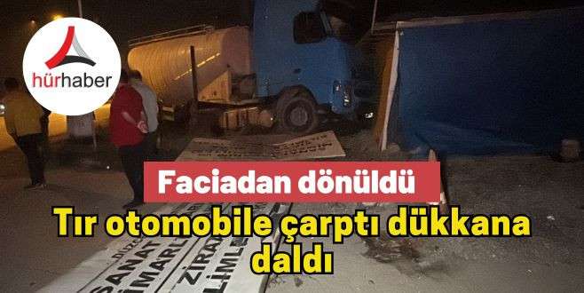Tır karşı şeride geçti, dükkana çarparak durdu