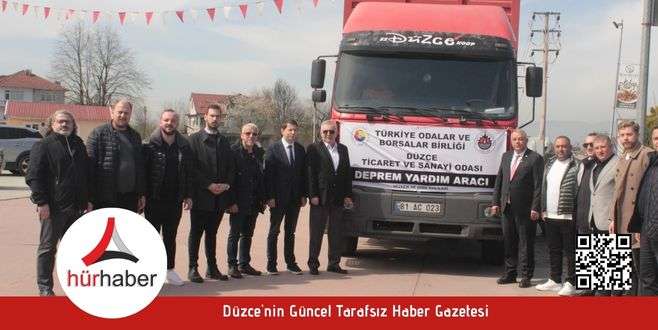 Düzce Ticaret ve Sanayi Odası (TSO) deprem bölgesine yardım göndermeye devam ediyor.Düzce Ticaret ve Sanayi Odası üyelerinin destekleriyle hazırlanan gıda ve temizlik malzemelerinden oluşan deprem yardım tırı TOBB’a ulaştırılmak üzere yola çıktı. Düzce TSO Yönetim Kurulu Başkanı Erdoğan Bıyık, Meclis Başkanı Tanju Acar, Yönetim Kurulu Üyeleri, yardım tırlarının hazırlanması konusunda yoğun faaliyet gösteren komite başkanları ile komite üyeleri hazır bulundu.Erdoğan Bıyık; “Bugün komitelerimizin el birliği ile topladığı hijyen ve gıda yardımlarını deprem bölgesine sevk ediyoruz. Odamız üçüncü, beşinci, yedinci ve dokuzuncu meslek komitesi başkanlarımıza ve üyelerimize teşekkür ediyoruz. Allah hayırlarını kabul etsin. İnşallah buradaki yardım malzemeleri deprem bölgesindeki vatandaşlarımızın biraz olsun dertlerine deva yaralarına merhem olacaktır diye düşünüyoruz” ifadelerini kullandı.Düzce TSO Yardım tırı yapılan konuşmaların ardından Ankara’ya doğru yola çıktı.