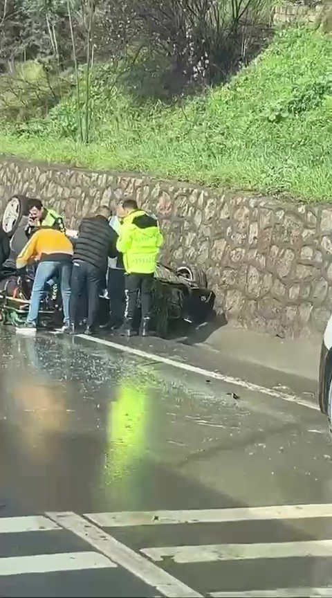 Kocaeli'nin Gebze ilçesi D100 kara yolunda yaşanan trafik kazasında bir otomobil kontrolden çıkarak ters dönme sonucu hasar gördü.
