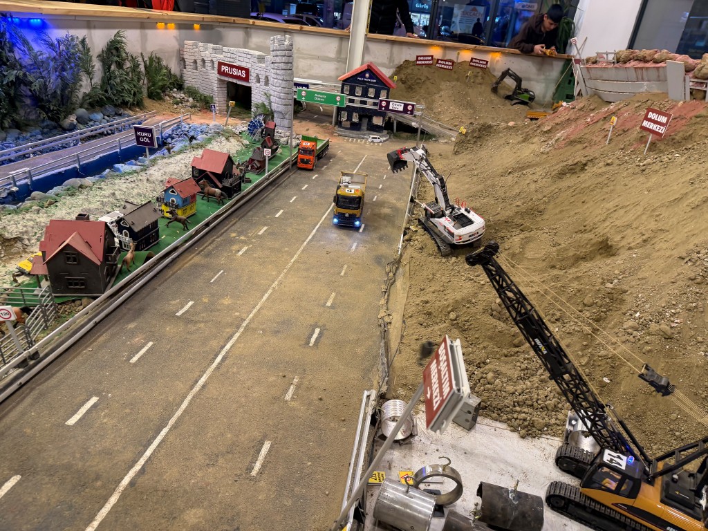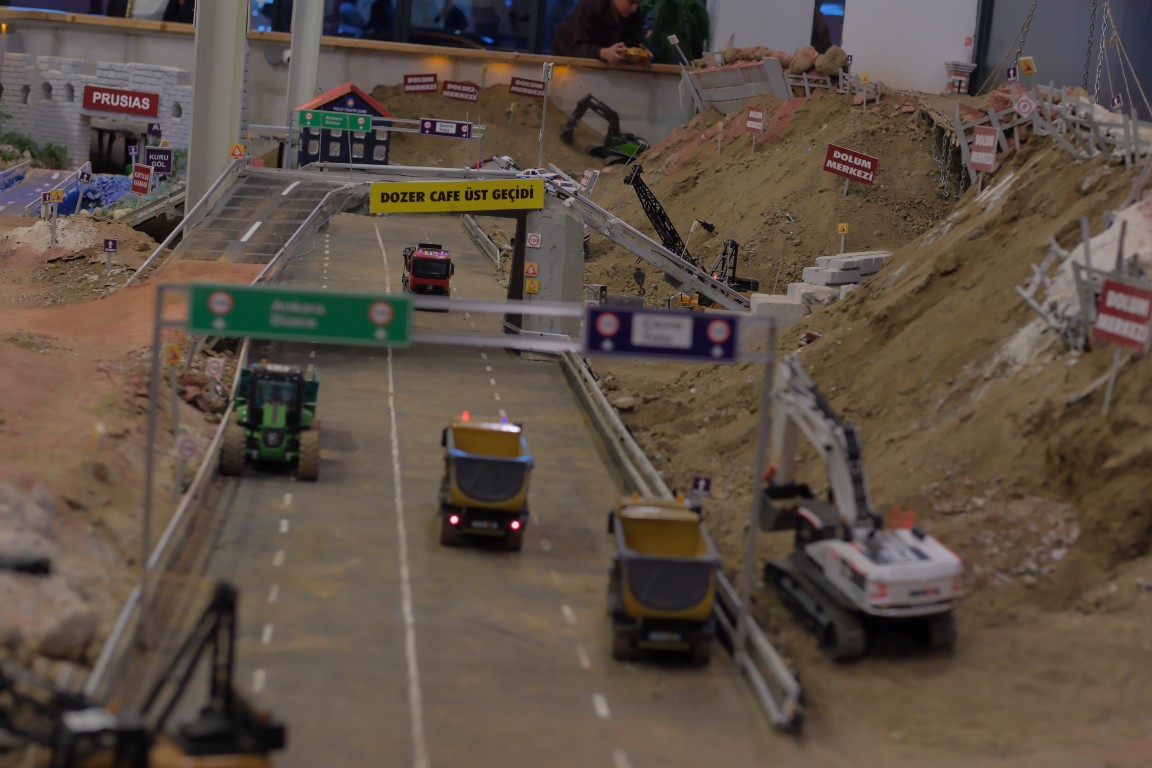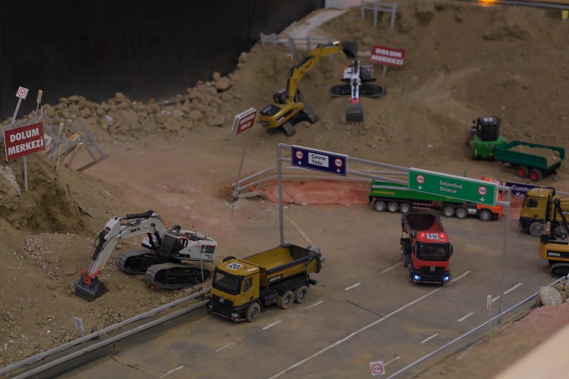 Uzaktan kumandayla kontrol edilen RC araçlar ile yük taşınabiliyor, kazı yapılabiliyor, tır ve kamyon kasalarına vinçlerle yük bırakılabiliyor.
