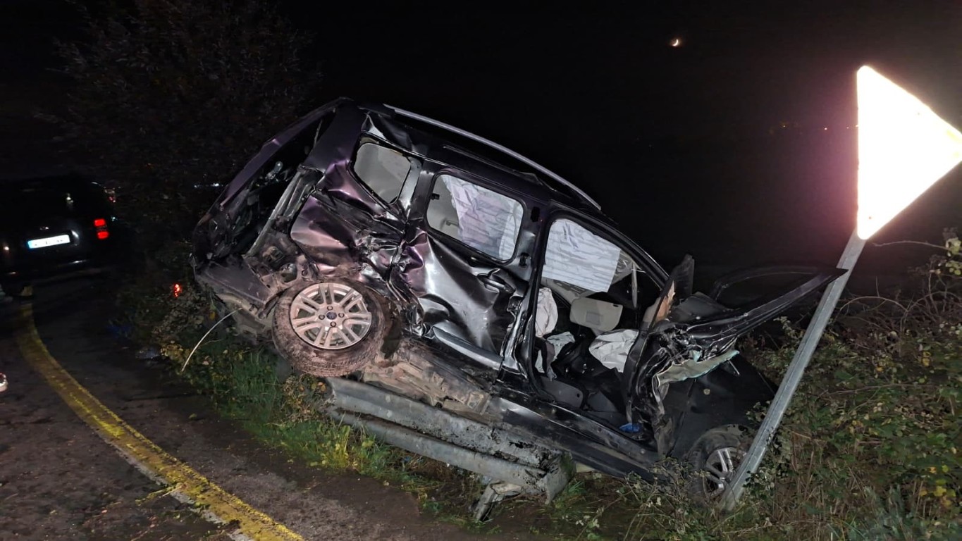 Çarpışmanın etkisi ile bariyerlere aşan 54 HU 034 plakalı hafif ticari araç şarampole yuvarlandı.